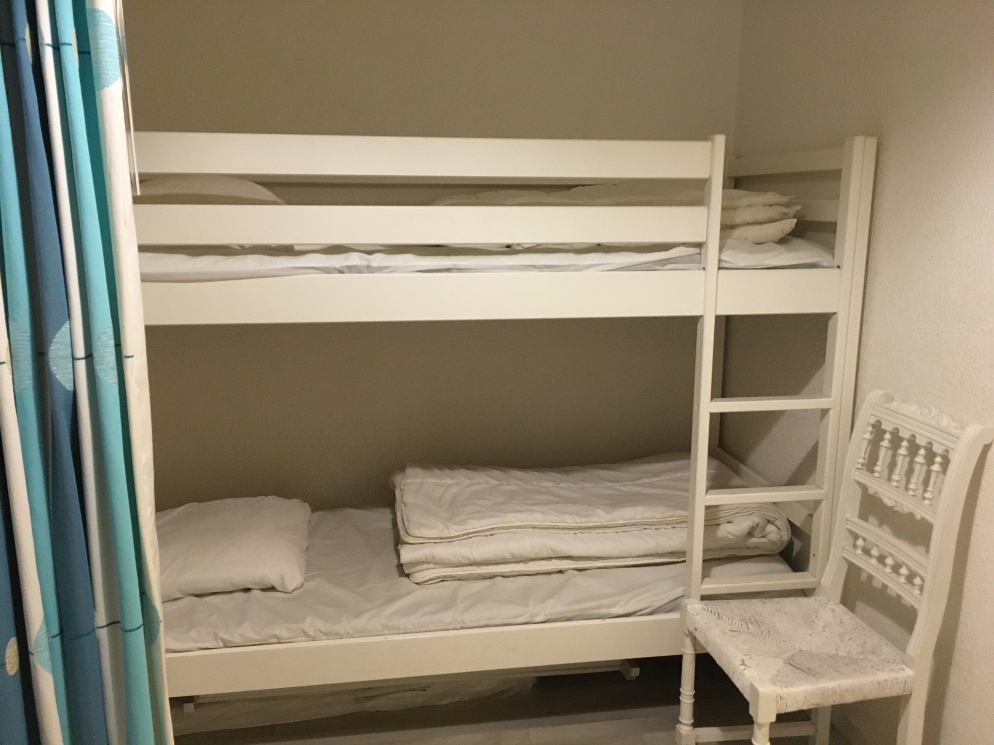 A proximité du club de voile les amateurs de sensations sportives en mer seront ravis, capacité 4 personnes (1 lit gigogne dans le séjour et lits superposes dans la cabine).